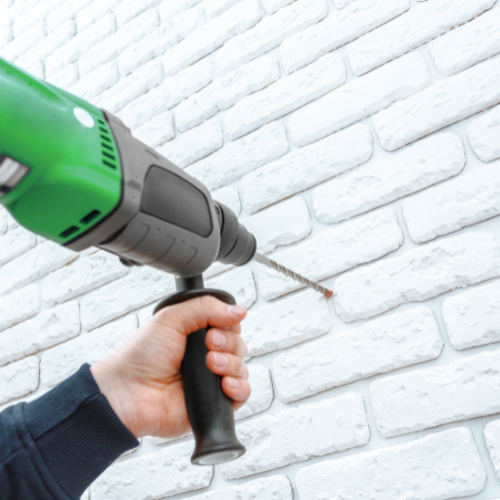 Boren van openingen in de muur en aanbrengen van isolatiemateriaal in de spouw.
